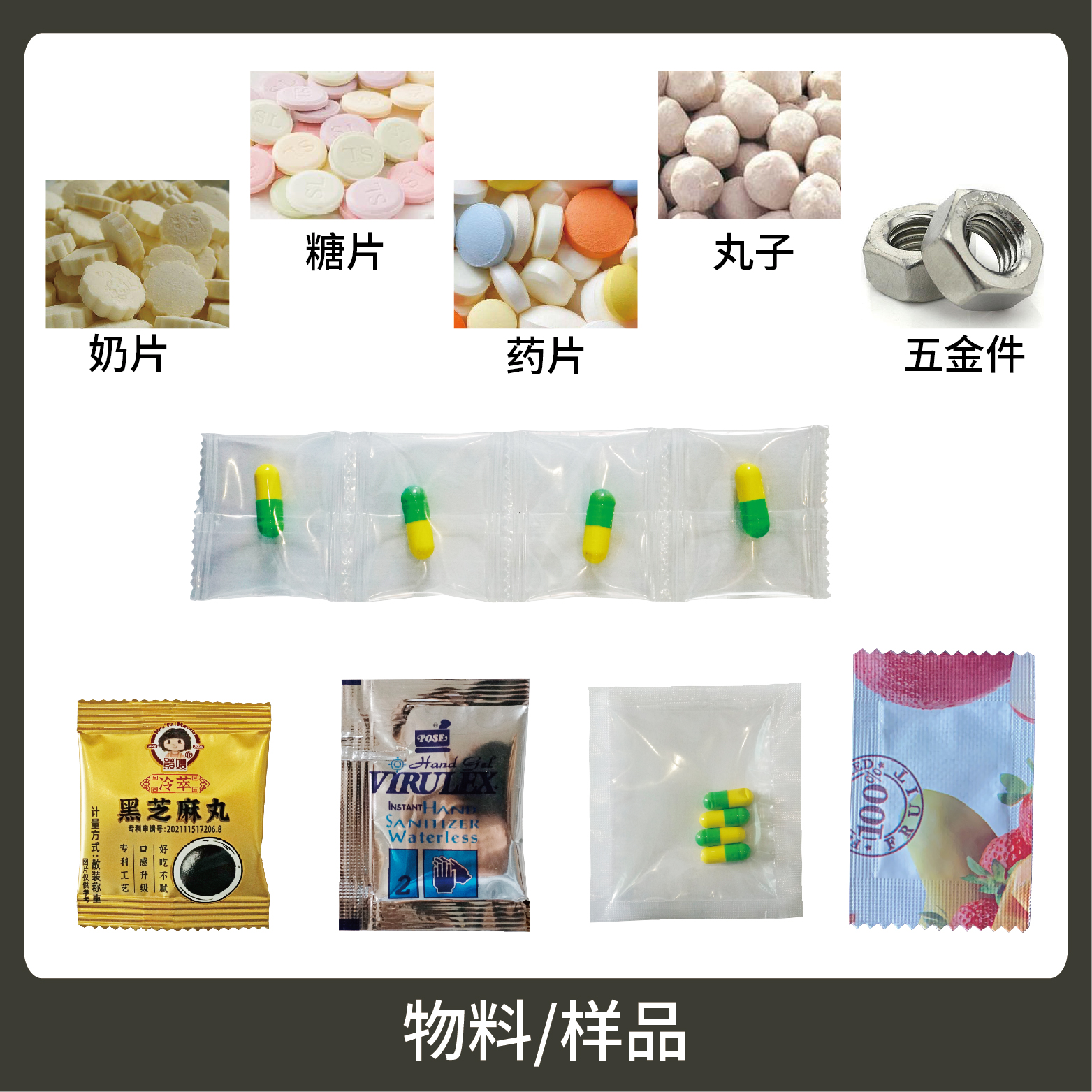 適用于食品、醫(yī)藥、化工、化妝品行業(yè)中顆粒物品的計(jì)量包裝,如:藥片、糖果、奶片、丸子、五金件。